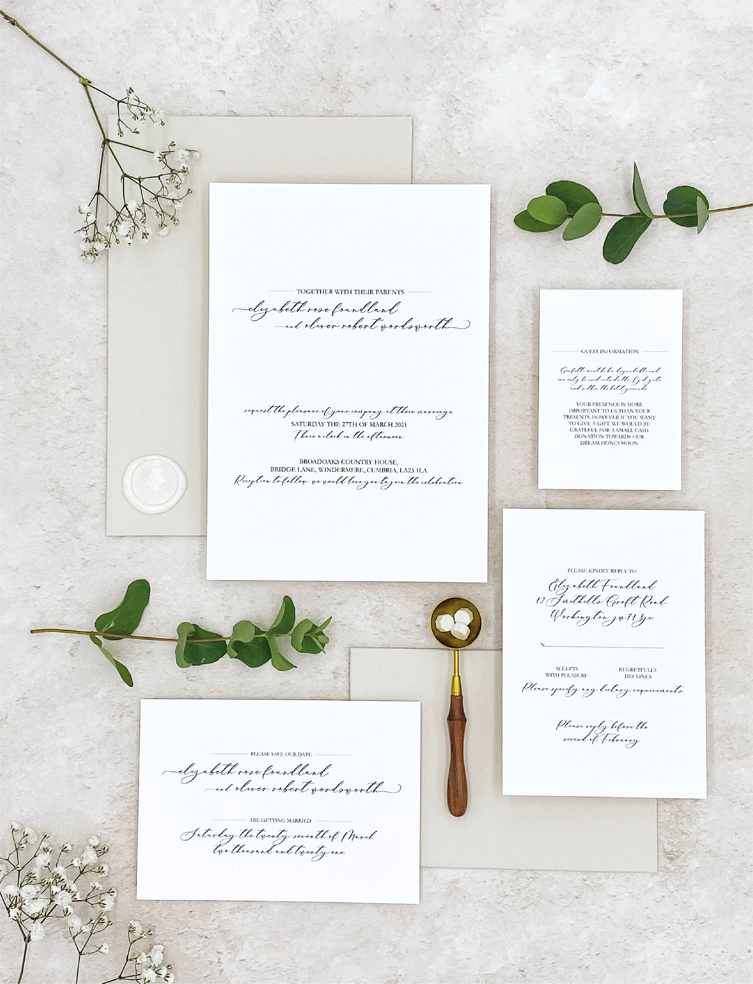 Our Elizabeth Suite has an elegant aesthetic, the traditional style of typography combined with the stylish layout make this a really beautiful collection.